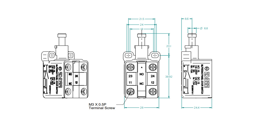 Lug Feasibility | Barrel type,'U' type,Bare Cable 0.5mm2 to 2.0 sq. mm Cable. |